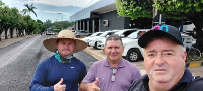 Os vereadores Oslen Dias dos Santos, o Tuti, presidente da Câmara Municipal de Alta Floresta, e Francisco Ailton dos Santos, começaram o sábado (18.06) fiscalizando a aplicação do microrrevestimento nas Ruas D-3 e Soldado Adão A. dos Santos (D-4), no Setor D.